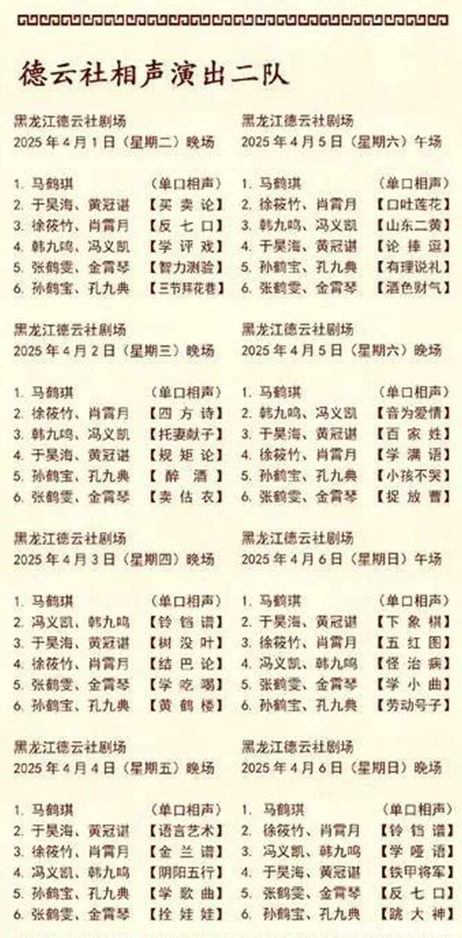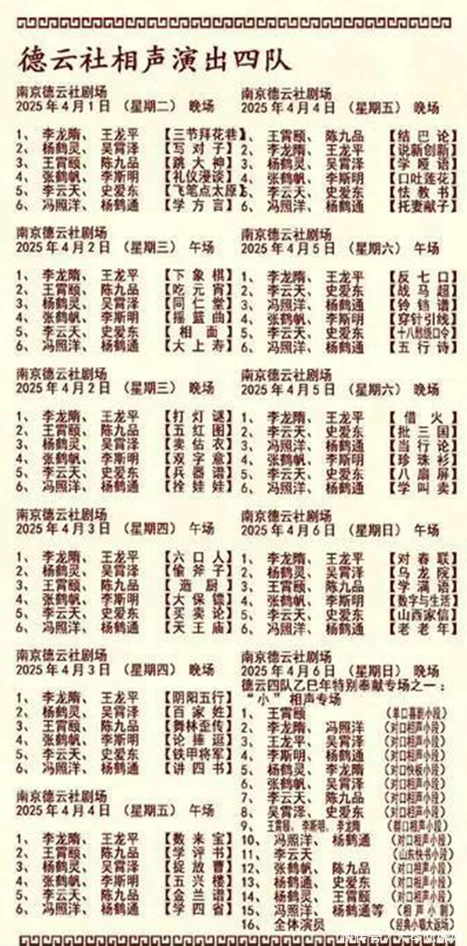 嘿,您说这事儿怪不怪?最近我无意间刷到德云社的节目单,这一看可不得了啊,我就琢磨起一个问题来。这德云社啊,看着架势规模挺大,全国好多分场呢,节目单上那也是密密麻麻全是人名。可您猜怎么着?我这瞅了半天,愣是一个都不认识啊!哦,对了,栾云平和高峰我倒是知道,不过他俩能在德云社算顶梁柱吗?我看啊,也就是出来撑个场子罢了。